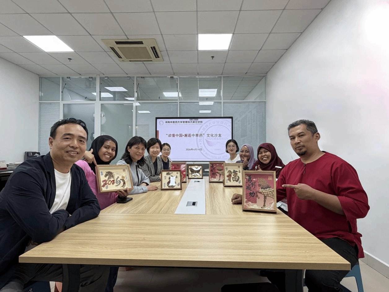 为搭建文化传播桥梁,丰富马来西亚管理与科学大学(MSU)外派教师的课余生活,2026年4月14日下午,河南中医药大学管理科大联合学院师生与MSU教师共同组织了“读懂中国•邂逅中草药”文化沙龙活动。