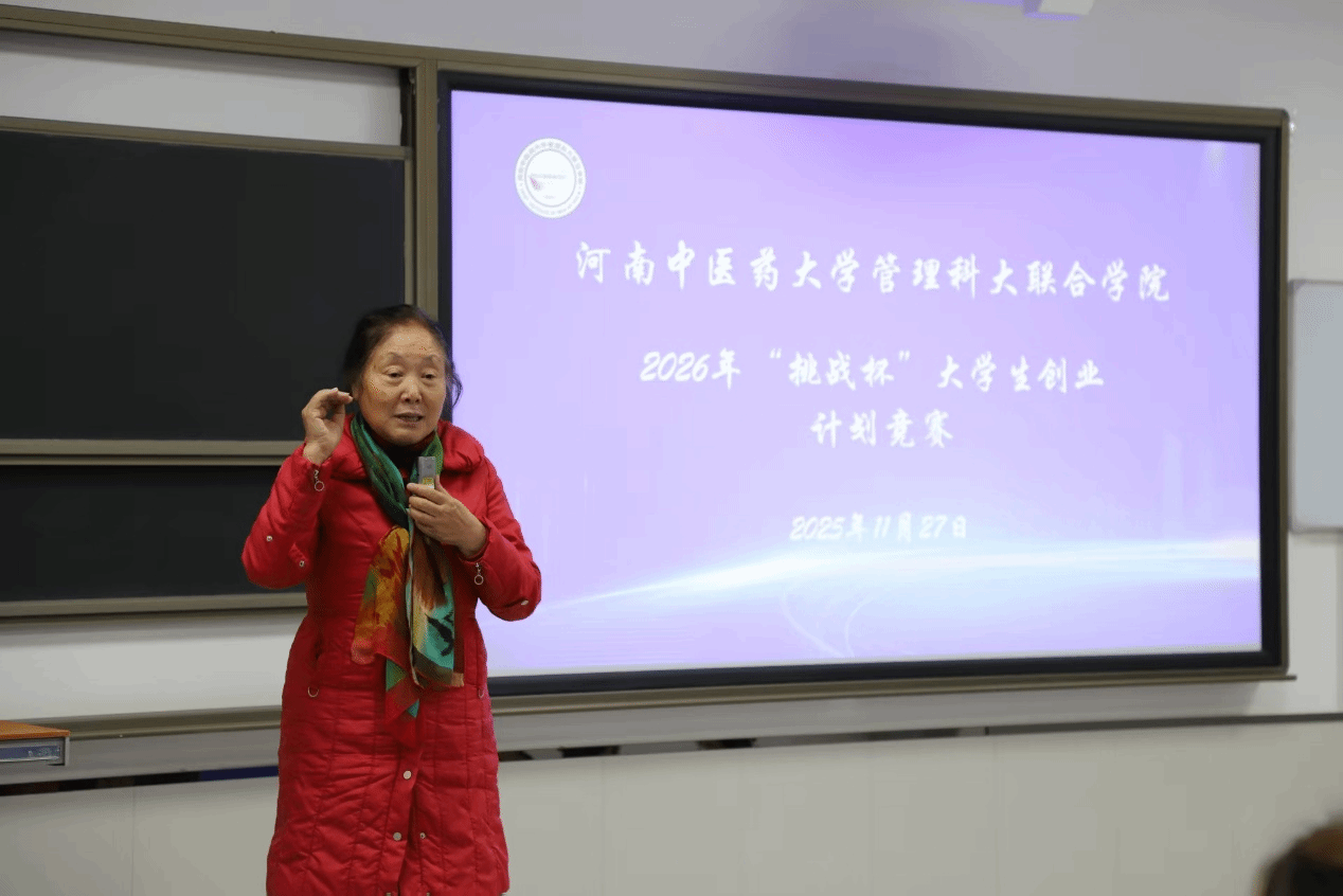 (文/李慧明 图/张婷)为了进一步深化科创育人成效,展示学子在创新创业领域的实践成果,11月27日下午,管理科大联合学院于教学楼A613举办2026年“挑战杯”创业计划竞赛院赛。结合学院龙子湖校区和马来西亚校区学生情况,比赛采用线上线下相结合方式。本次活动特邀河南省挑战杯、创业导师王宪龄教授,学院党委书记刁青蕊、院长卢萍、副院长常瑛、党政办公室主任张宝担任评委,各项目团队及学生代表共70余人参加了活动。